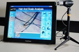军大治斑秃,利用尖端毛囊检测设备,准确对脱发级别、头皮油份、毛囊的问题、新生绒毛的长度等检测,为有效治疗做好关键性的第一步。