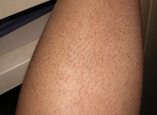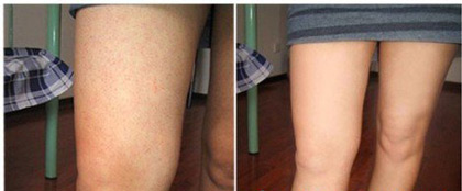 在查阅过相关治疗后了解到“鸡皮疙瘩”就是毛周角化病,是遗传性疾病,小丽也是从小就有,最初大腿上有一点点小红疙瘩,后来随之年龄的增长,越来越多,而且皮肤变得粗糙。小丽来医院的时候讲话都是怯怯的,让人很心疼,可见“鸡皮疙瘩”带给她的阴影是多么的巨大!