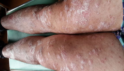 不明原因的患者来到附近的小诊所,可谁想结果竟然不是普通的皮肤病,竟然是牛皮癣。这一下吓傻了,怎么会突然就患上牛皮癣了,思来想去也不知道是什么原因。医生给开了好多药物,说回去试试,如果不行就再来。