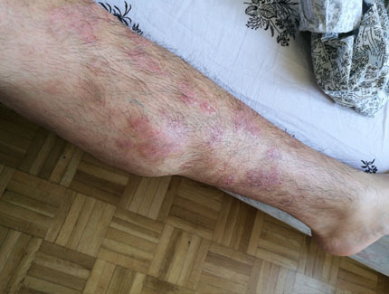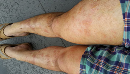 患者是一名水电工人,回老家后,为建造新房时刻忙碌着。新房建造需要大量的人力、物力一家都投入其中。就在忙碌中,患者发现自己身上长出了红色的小疹子,因为太忙的缘故,一下子也没时间到医院去检查。可谁想,等一切搞定的时候发现身上已经长满了一身的疹子。