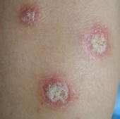 1、 牛皮癣进行期症状。牛皮癣的进行期是皮损的急性发生阶段,最明显的特点是新的皮损不断出现,原有的皮损也可以不断扩大,皮损常表现为鲜红色,周边常有一圈红晕,炎症特征比较明显,上面覆盖有疏松的、容易脱落的的银白色鳞屑。在牛皮癣进行期,患者的皮肤比较敏感,外界刺激容易导致同形反应的发生,如针刺、注射、手术切口等刺激健康皮肤表面,也可发生牛皮癣皮损,一定要尽量避免。