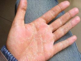 手癣常见症状:鳞屑、手表皮深处的水疱、丘疹,偶尔伴有瘙痒症状...