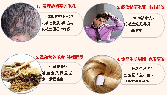成都军大医院的医师经过数年的潜心研究,结合数十年临床经验,采用中西医结合生发细胞激活治疗,四大步从根源上为患者解决脱发问题。
