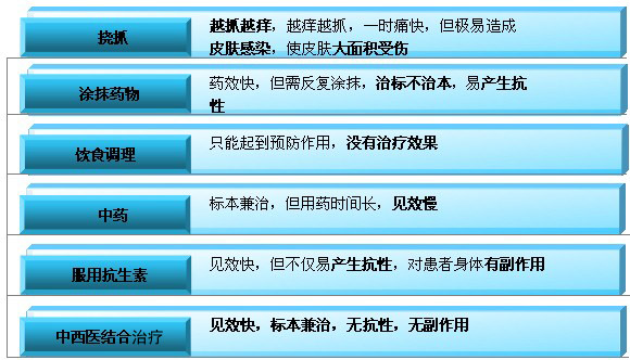 很多患者在发病初期,因为瘙痒难忍,会不停挠抓,结果疙瘩越抓越多,有些甚至会有脓水渗出,导致周围皮肤被感染,在这种情况下患者通常会采取以下几种方式: