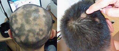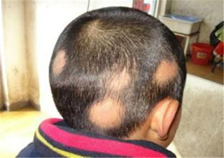 没想到半个月来东东开始成片成片地掉头发,头顶很快出现四五个硬币大小的秃发区。后经医师仔细给东东检查后,告诉妈妈孩子患的是斑秃。